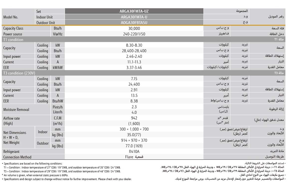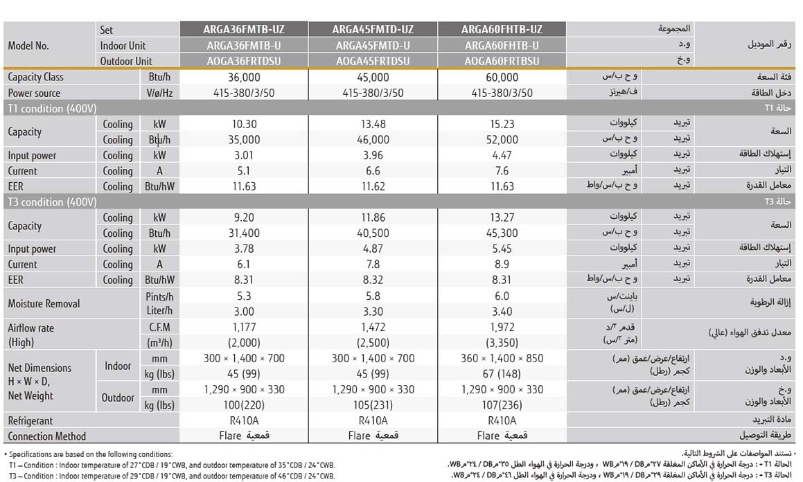 Energy efficiency is improved drastically by new airflow design and R410A refrigerant.
