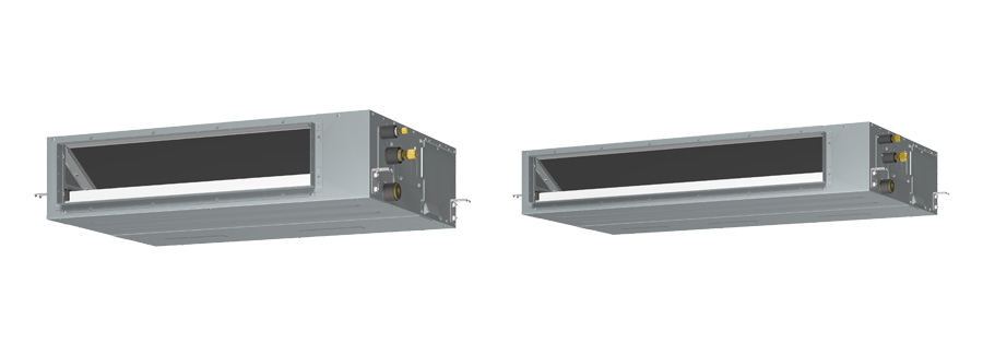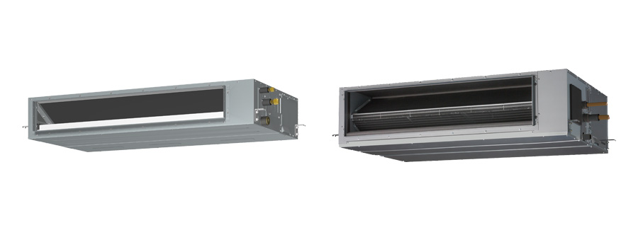 The indoor unit’s height is only 240mm for use in narrow spaces under the ceiling, and the outdoor unit’s compact size and light weight allows flexibility in various installation locations.