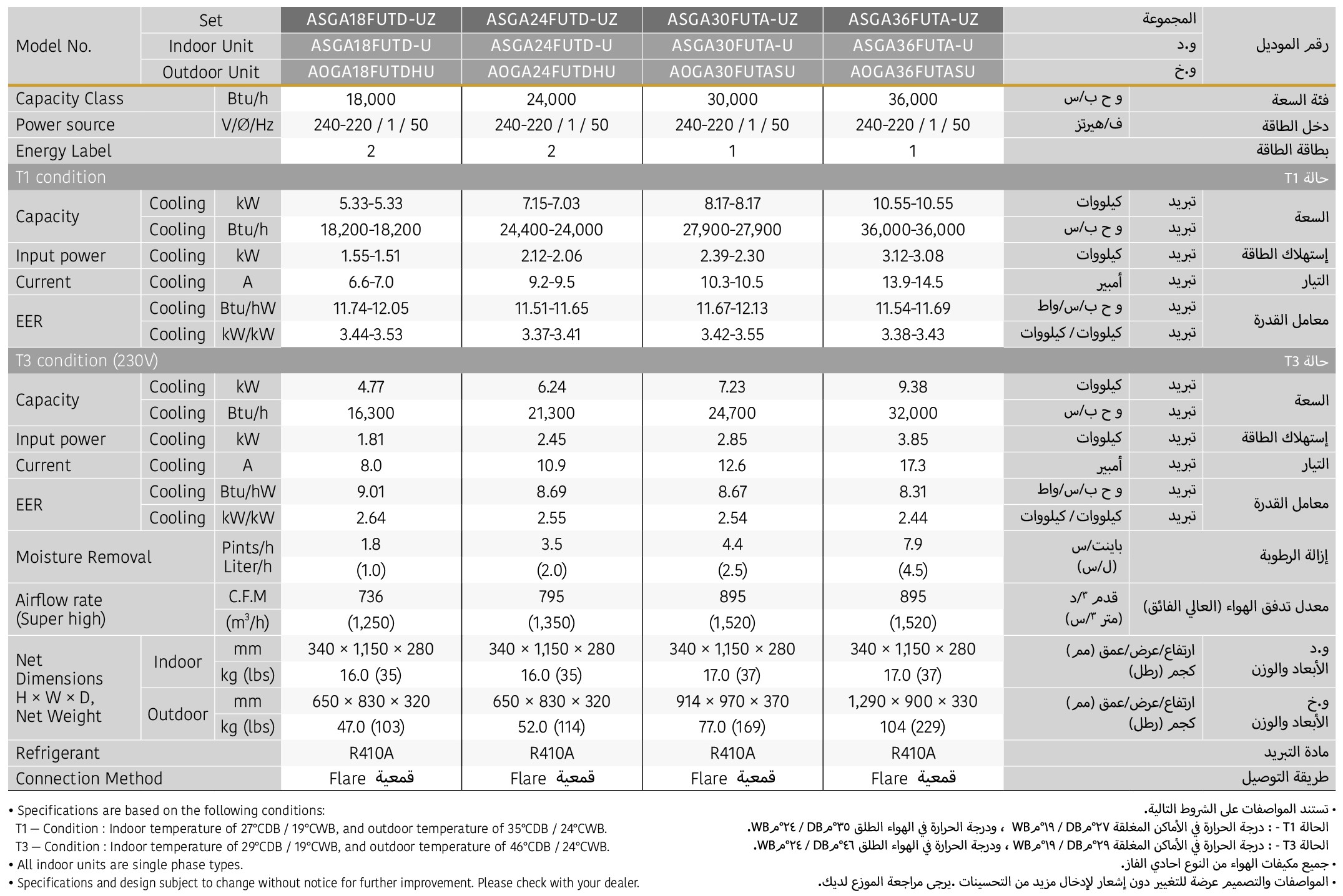 Higher EER is achieved by the new technologies and new refrigerant.