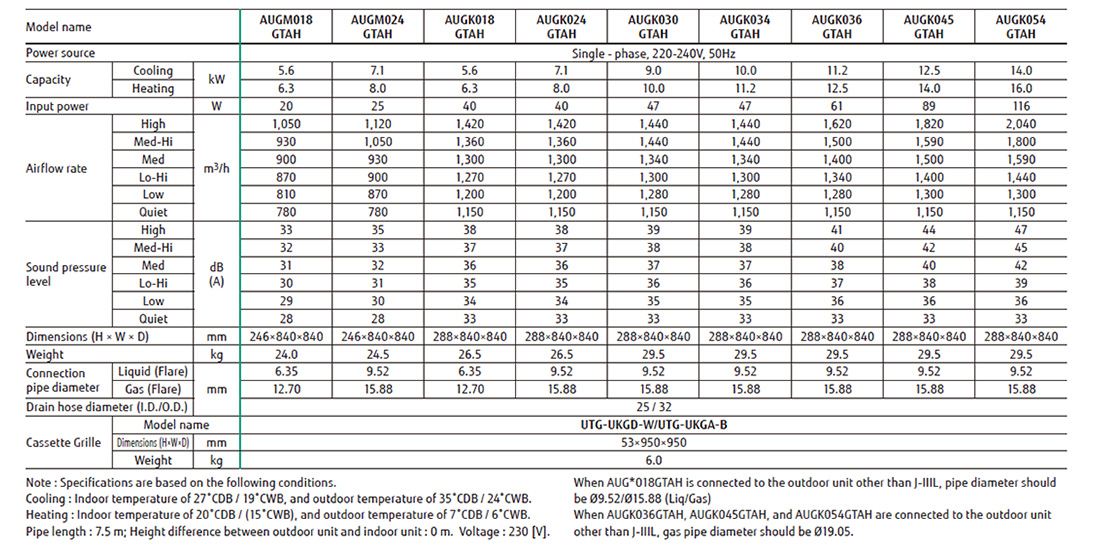 Models: AUGK018 / AUGK024 / AUGK030 / AUGK034 / AUGK036 / AUGK045 / AUGK054