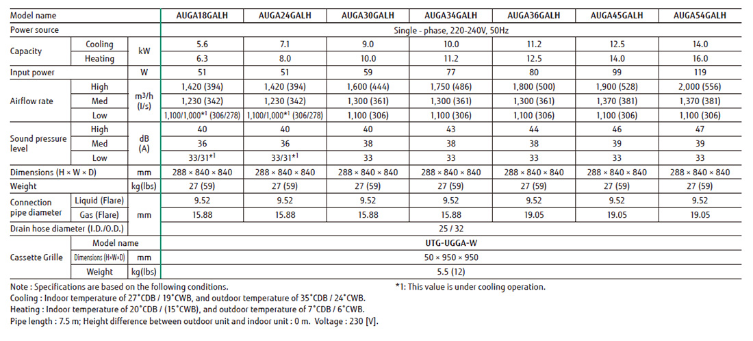 This cassette can be installed up to a height of 4.2m (36/45/54).