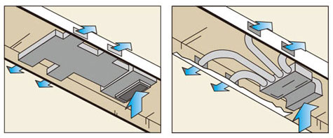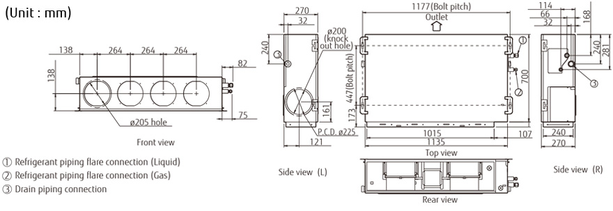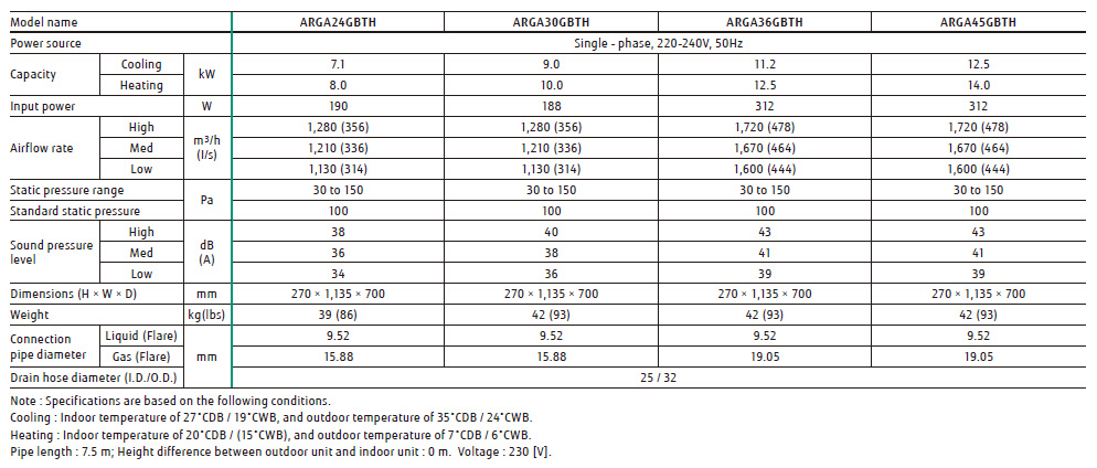 In the case of bottom return air connection, not only does the indoor unit design allow for installation in a narrow ceiling space of up to 270mm, Further space savings have been achieved by mounting the electrical control box internally inside the chassis.