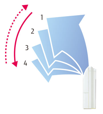 A combination of up/down and right/left directional swing allows three-dimensional air direction control.