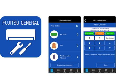 This app provides information on error messages for all current models of Fujitsu General air conditioners. It also helps you check the condition of your air conditioner, such as thermistor resistance and pressure, and shows troubleshooting charts taken from service manuals.