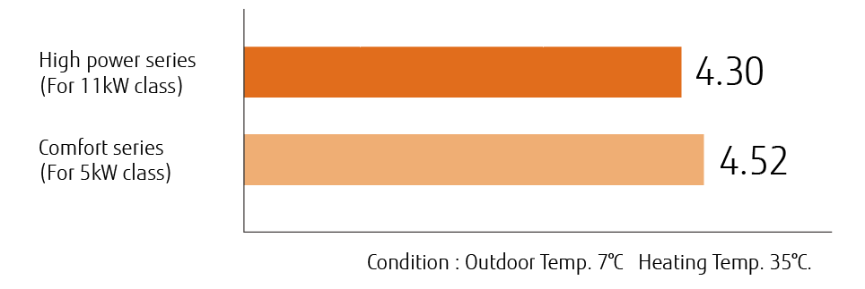 High leaving water temperature of 60°C is kept even when outdoor temperature is down to -20°C.