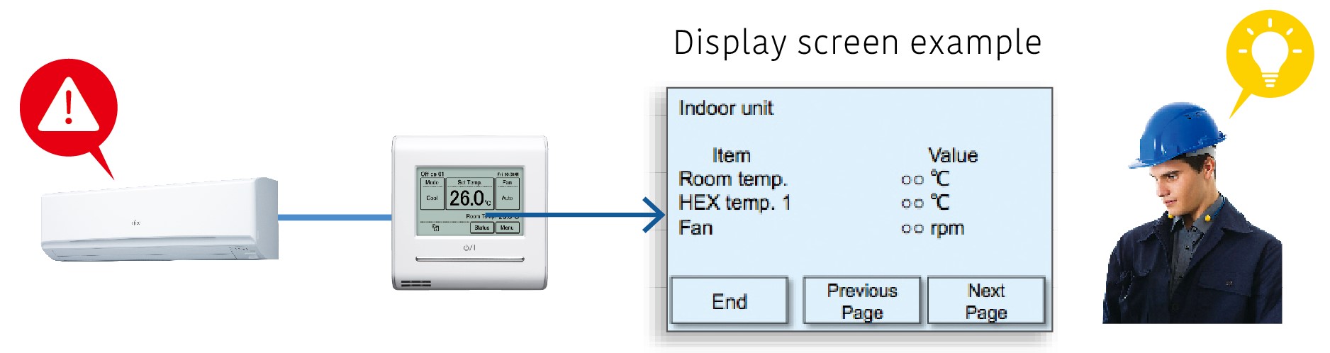 Wired Remote Controller (Touch Panel) will support to display some sensor values for maintenance and service support.