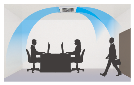 Airflows avoid blowing cool air directly at the occupants in the room, providing more comfortable air conditioning.