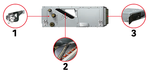 The indoor units have large panels on both sides providing easy maintenance in narrow spaces.