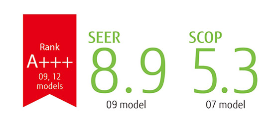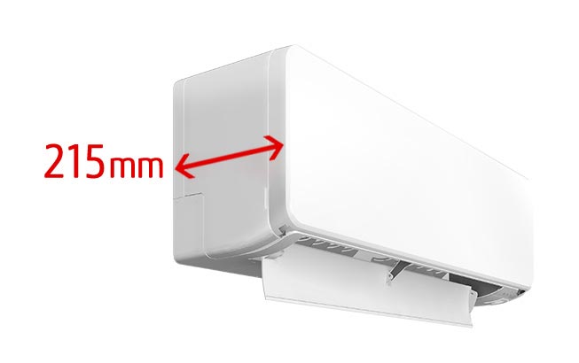 Outstanding energy efficiency is achieved by using a high-efficiency lamda heat exchanger, a large crossflow fan, and R32 refrigerant.