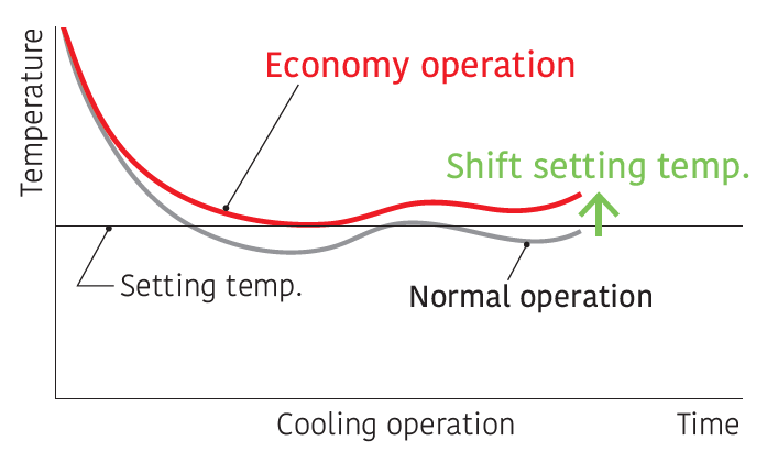 Set temperature automatically increases or decreases by 1°C. The thermostat setting is adjusted automatically according to the room temperature to avoid unnecessary cooling or heating.