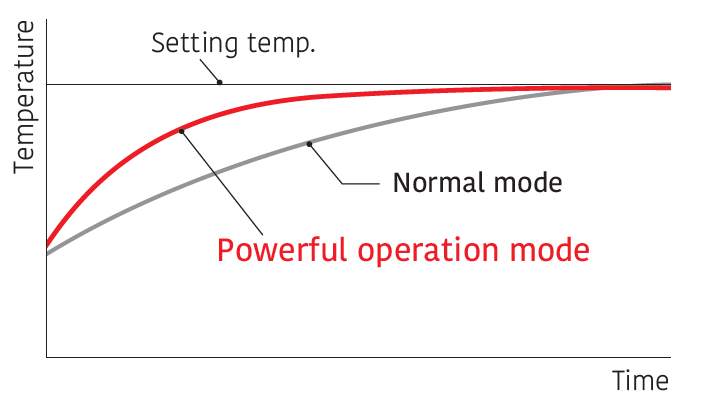 In powerful operation mode, the compressor operates at maximum speed for 20 minutes to provide a powerful airflow. Rapid cooling and heating makes the room comfortable quickly.