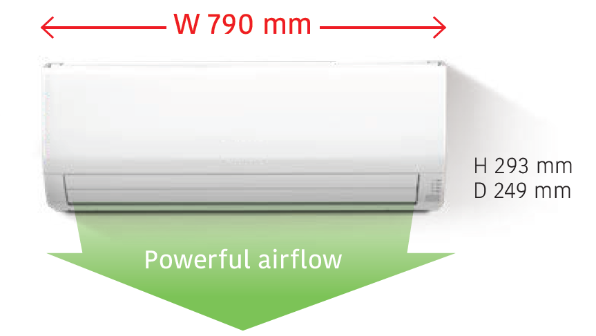 Compact and versatile. Powerful airflow is realized despite the 790-mm width compact design for small spaces such as bedrooms or home offices.