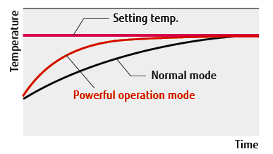 20 minutes continuous operation by maximum airflow and maximum compressor speed is possible. Rapid cooling and heating makes the room comfortable quickly.