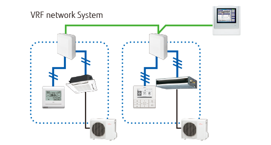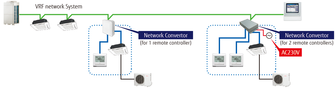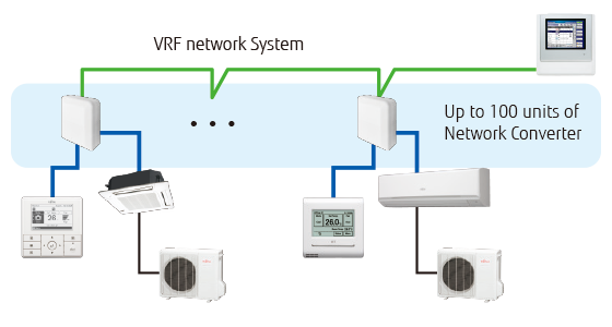 - A network converter is required when connecting a single-split system to a VRF network system.