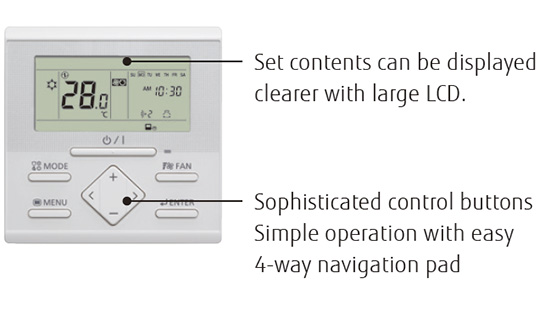 A single remote controller controls each connected indoor unit and provides a weekly timer function and a variety of energy-saving options.