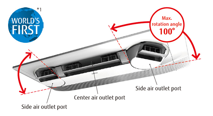 The Comfortable airflow setting enables the right and left air outlet ports as well as the wide center port to work together to provide a comfortable room environment.