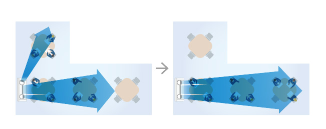 The individual airflow setting function optimizes the airflow direction to match the room layout.
