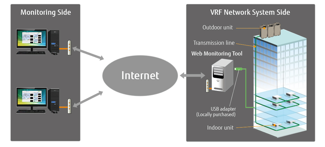 - Troubleshooting is performed by monitoring each air conditioning unit remotely during a periodical system check.