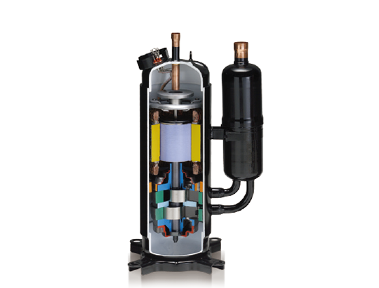 A high-efficiency, large-capacity DC twin-rotary compressor offers excellent intermediate capability.