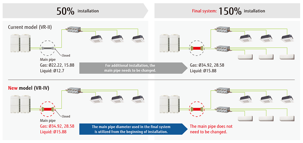 This function is especially effective when partial air-conditioning starts at the building under construction. Installation work can be added flexibly for each tenant.