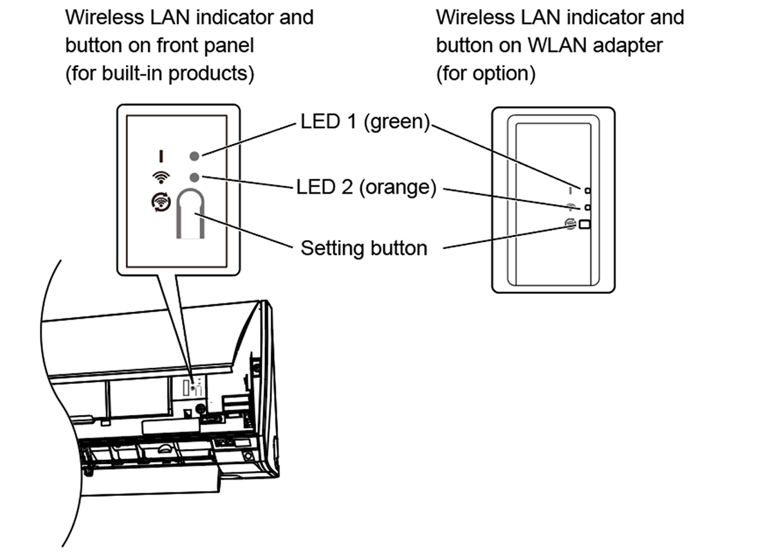- Press the START/STOP button again. When the adapter initialization starts, the "WLAN" indicator lamp begins to blink. When initialization completes, the "WLAN" indicator goes off.