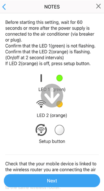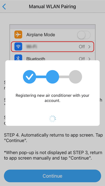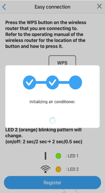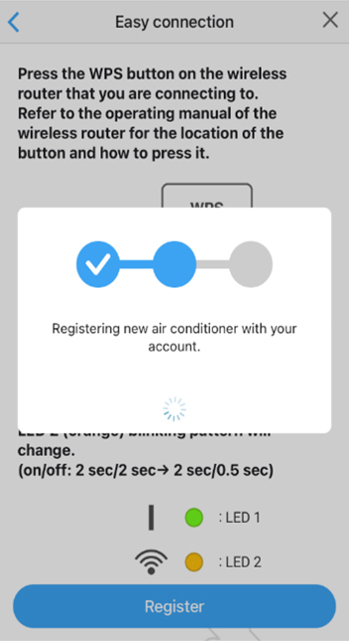 The message "Registering new air conditioner with your account" will appear on the screen.