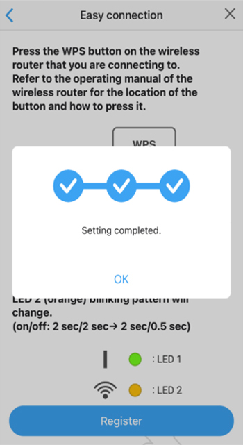 The message "Setting completed" will appear.
