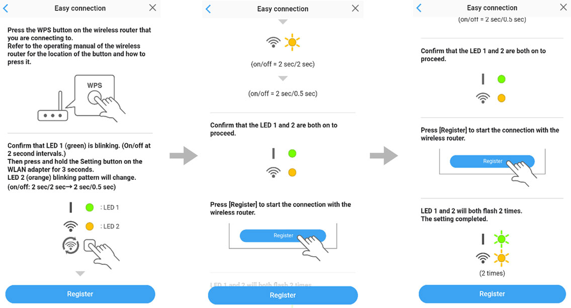 Then press and hold the Setting button on the WLAN adapter for 3 seconds.