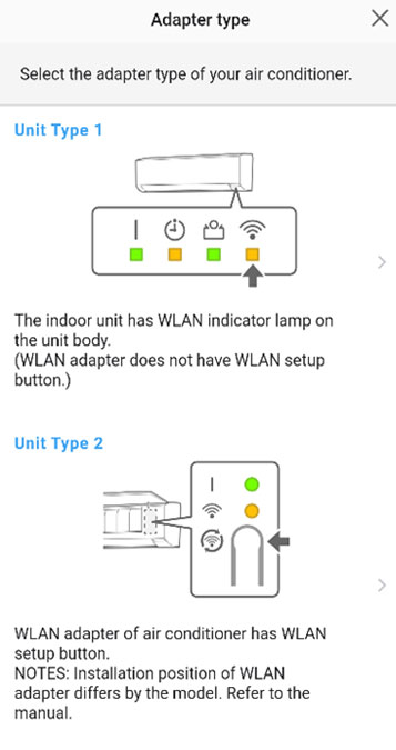 Ckeck that the your mobile device is linked to the wireless router you are connecting the air conditioner.
