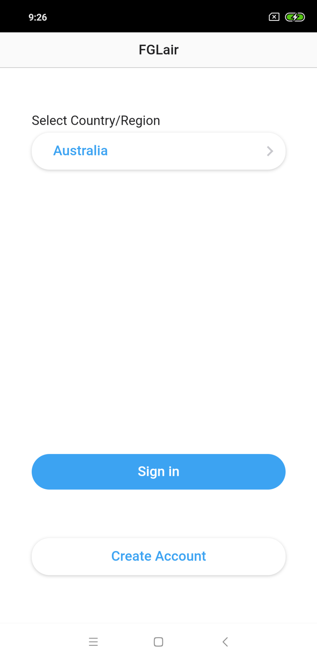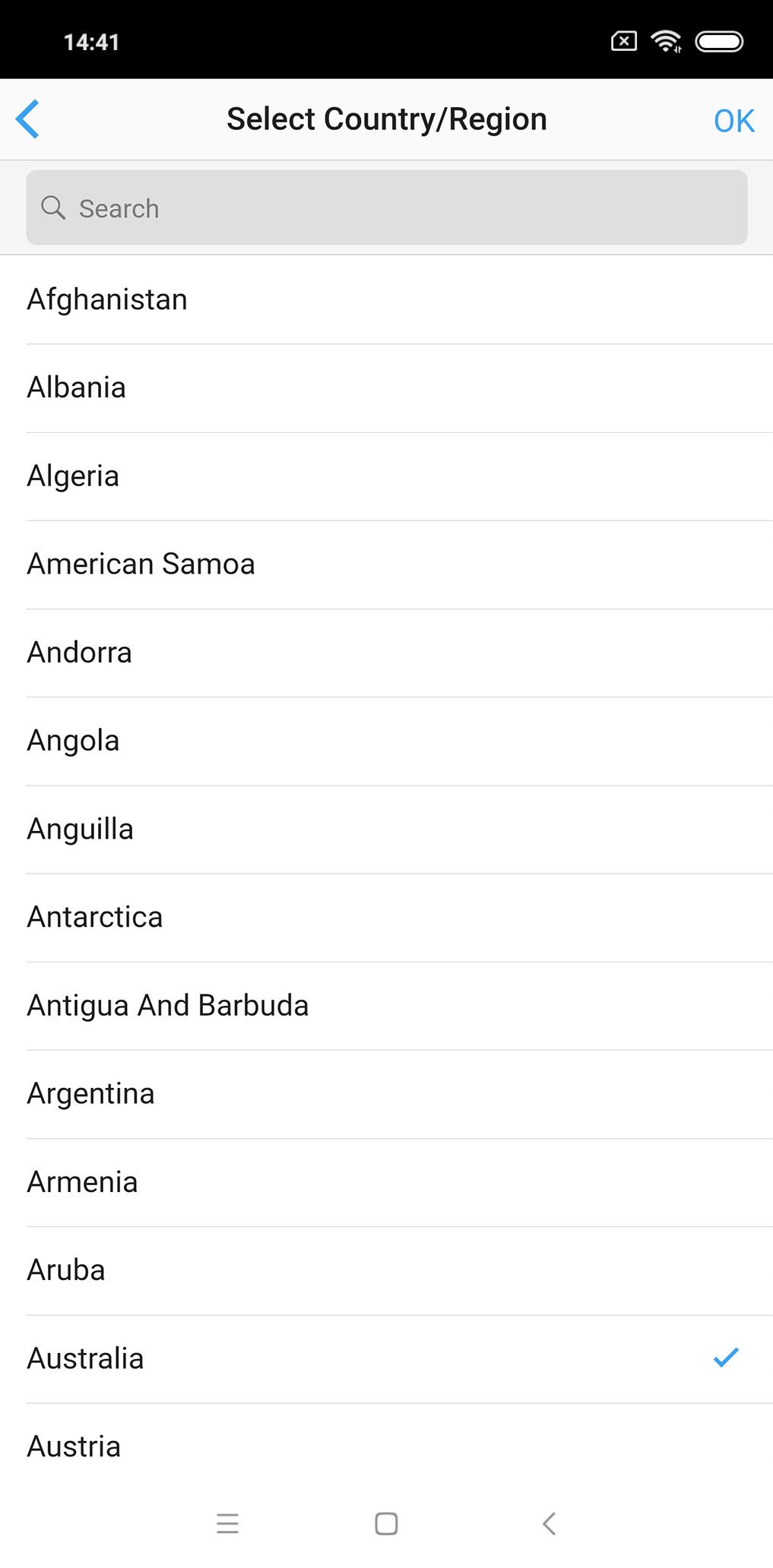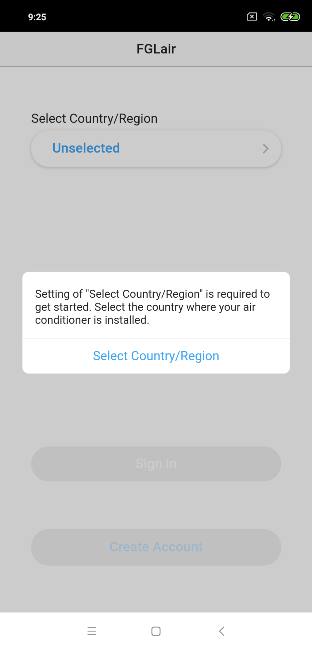 When launching the mobile app for the first time, select the region of installment from the list in the following screen. To set, tap [Select Country/Region].