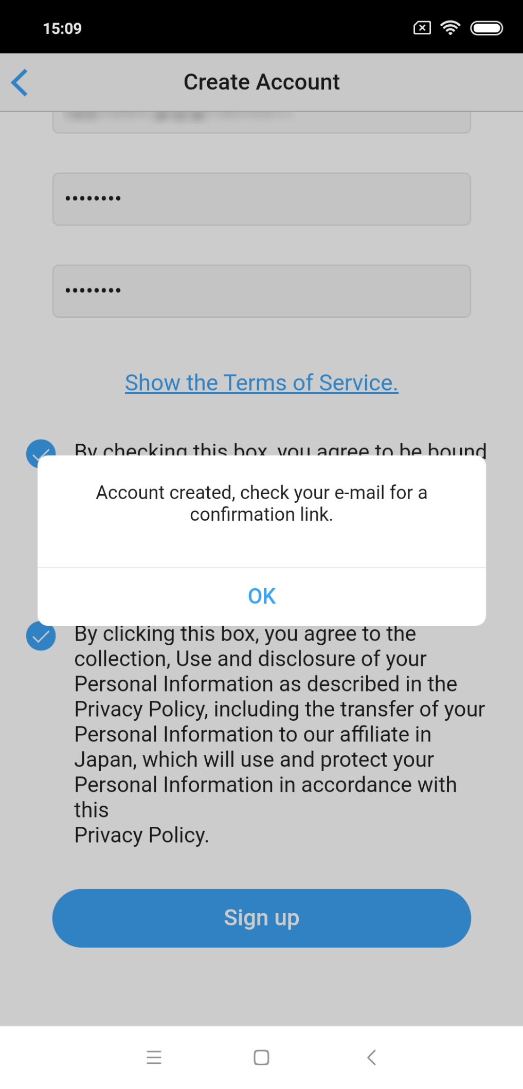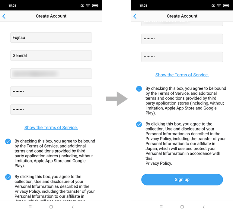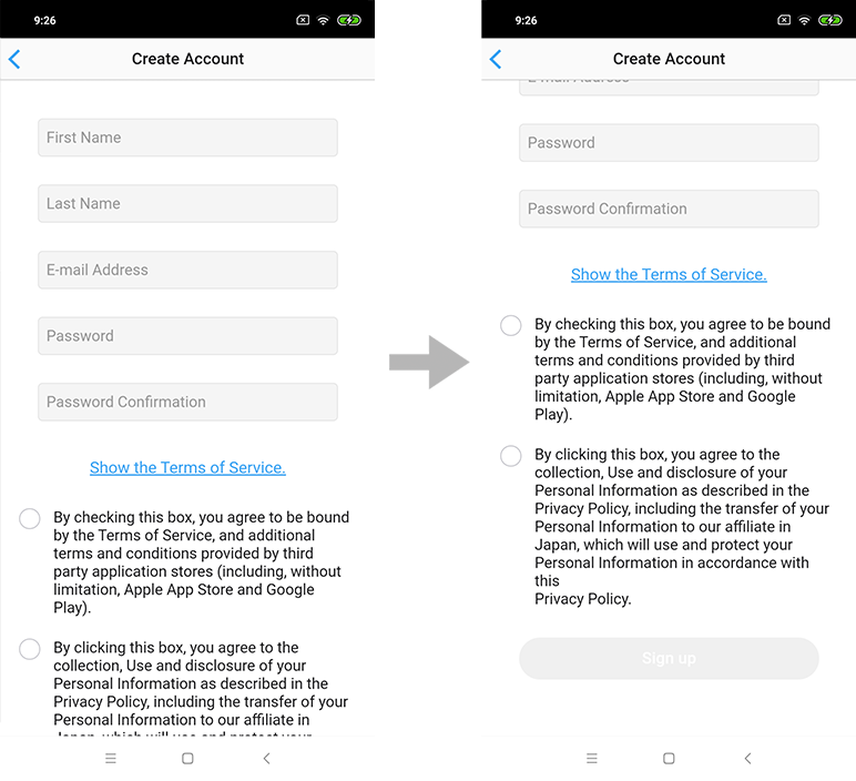 Check the box if you agree to the terms of service. (Approval is required to use this mobile app.)