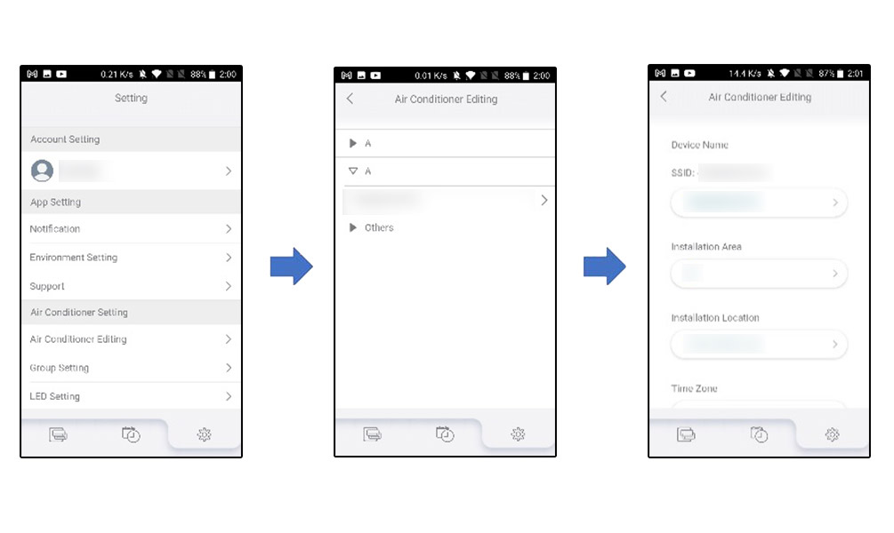 - Select Air conditioner editing of the Air conditioner Setting.