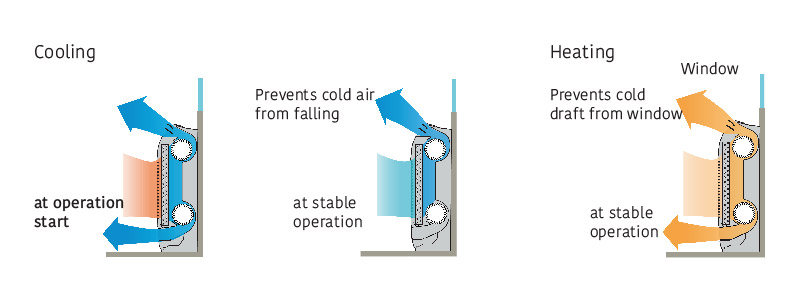 Individual vertical airflow by 2-fan can control the whole room comfortably.