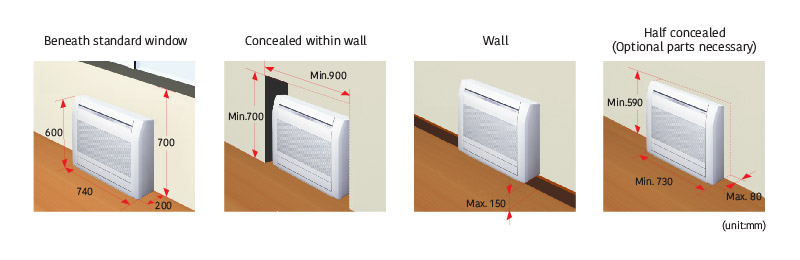 Due to compact and whole surface suction method model, floor, concealed, half concealed, or wall mounted installation can be available to match the room layout.