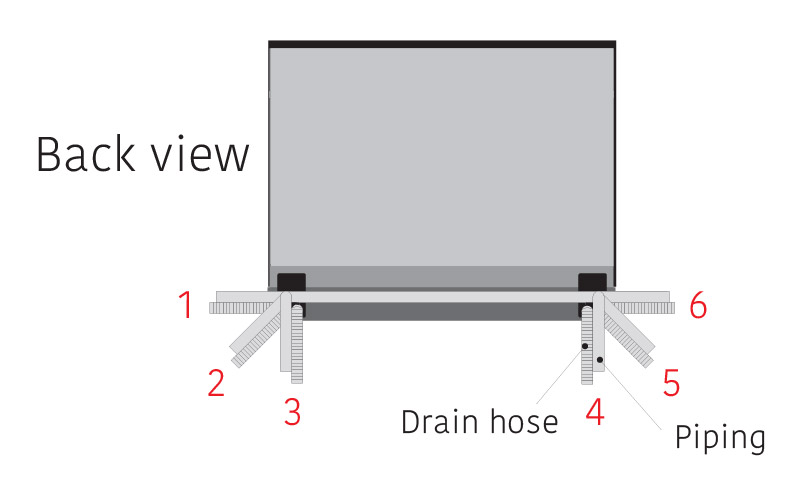 Drain hose and piping can be drawn flexibly in the right, left, side, and down directions