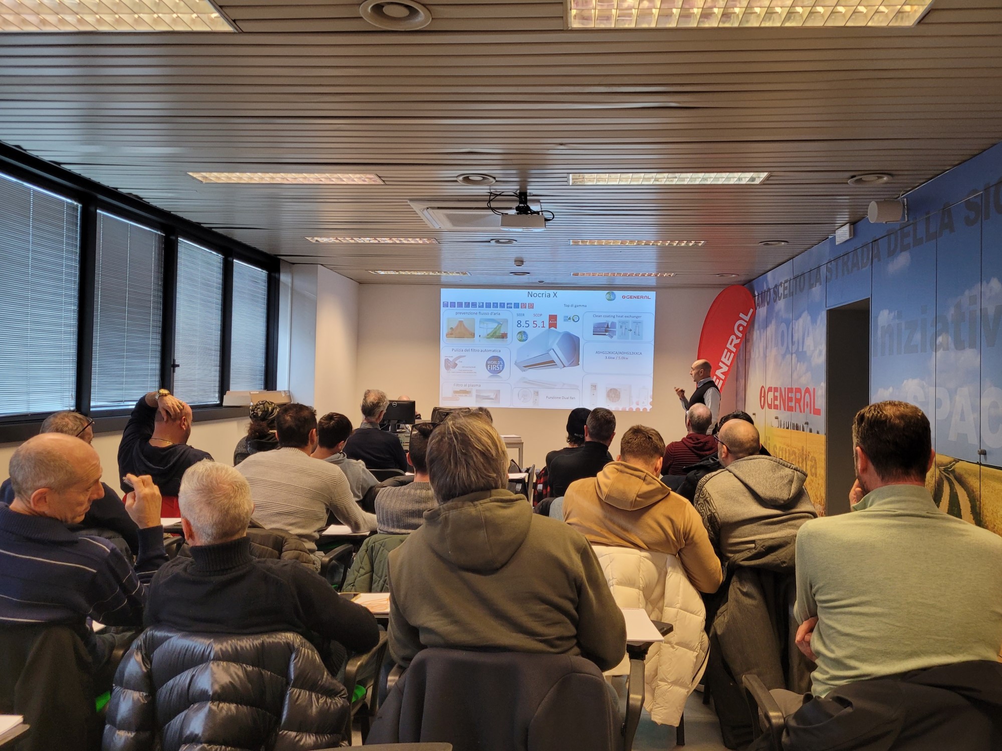 Si è tenuta in questi giorni, presso la sala training di FGIT a Cinisello Balsamo, una sessione di formazione e aggiornamento di prodotti rivolta ai nuovi installatori e CAT che hanno deciso di collaborare con noi. Si comincia con l’introduzione della gamma Residenziale, VRF e pompe di calore, proseguendo poi con l’approfondimento sulle specifiche peculiarità tecniche, infine concludendo con le procedure di configurazione e collaudo. I nostri tecnici; Carlo Paris, Diego Peroni e Riccardo Meneghelli della divisione post-vendita FGIT, si sono alternati in queste due giornate per trattare i vari argomenti.
