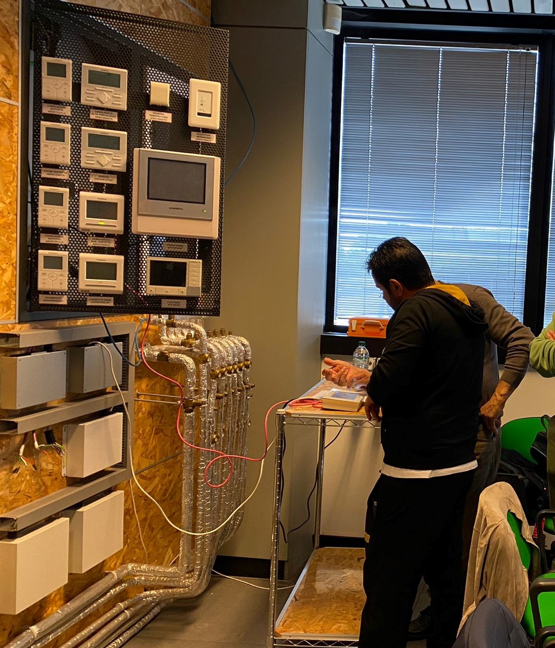 Si è tenuta in questi giorni, presso la sala training di FGIT a Cinisello Balsamo, una sessione di formazione e aggiornamento di prodotti rivolta ai nuovi installatori e CAT che hanno deciso di collaborare con noi. Si comincia con l’introduzione della gamma Residenziale, VRF e pompe di calore, proseguendo poi con l’approfondimento sulle specifiche peculiarità tecniche, infine concludendo con le procedure di configurazione e collaudo. I nostri tecnici; Carlo Paris, Diego Peroni e Riccardo Meneghelli della divisione post-vendita FGIT, si sono alternati in queste due giornate per trattare i vari argomenti.