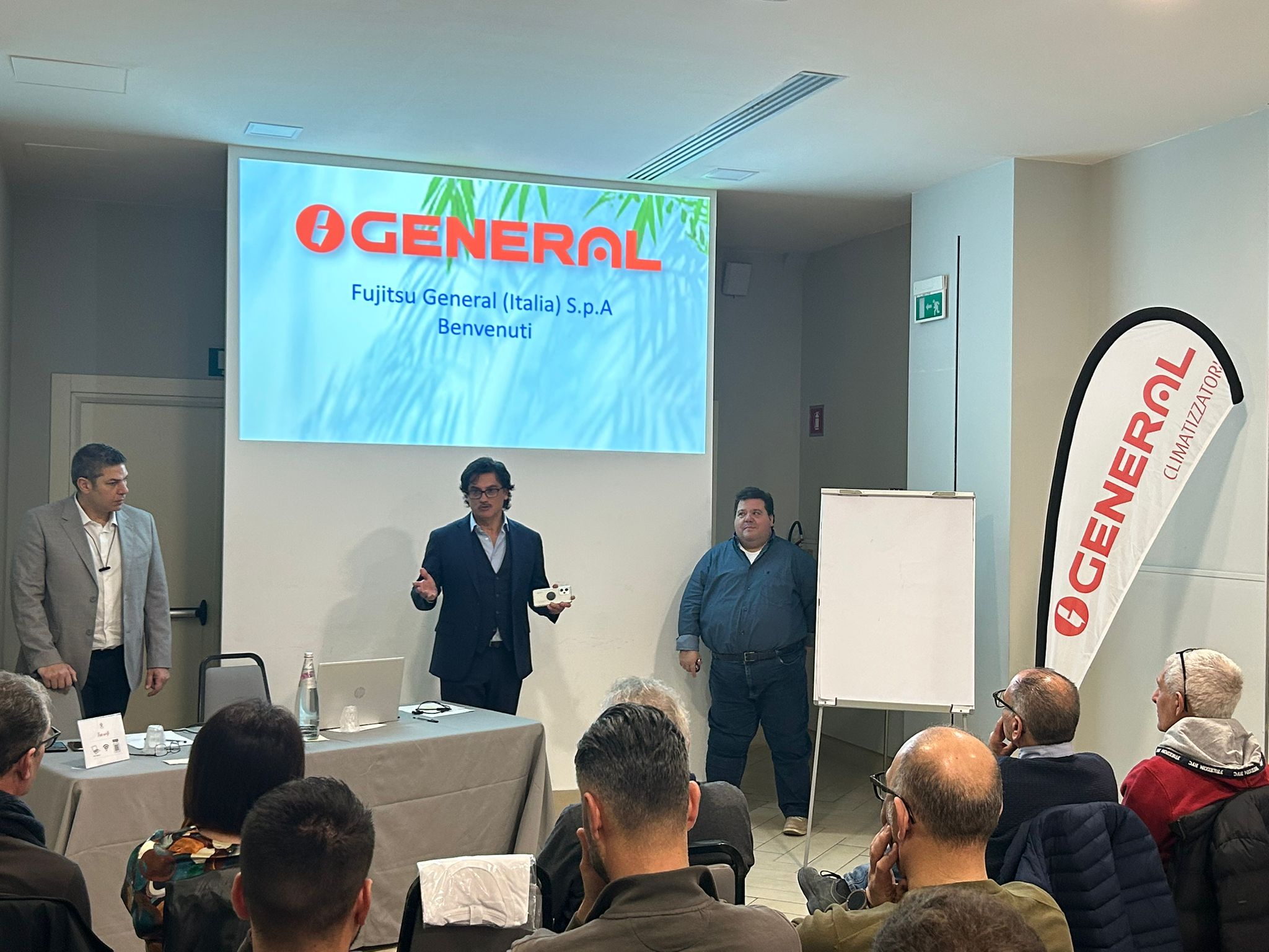 Proseguono gli incontri 2025 a cura di Fujitsu General Italia S.p.A. di seguito FGIT, rivolti ai centri di assistenza per il consueto aggiornamento prodotti e per approfondimenti tecnici. In questi giorni siamo stati in Sicilia. Ringraziamo le nostre agenzie siciliane per avere coordinato l’evento. Per FGIT sono intervenuti; il responsabile del servizio post-vendita sig. Carlo Paris e il responsabile service di area sig. Valerio Badii, l’ Area manager Gennaro Pellecchia. Contattate il vostro referente tecnico/commerciale di zona per conoscere le prossime tappe del nostro tour dedicato ai centri di assistenza GENERAL.