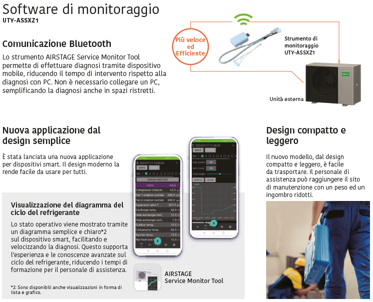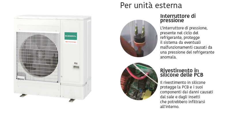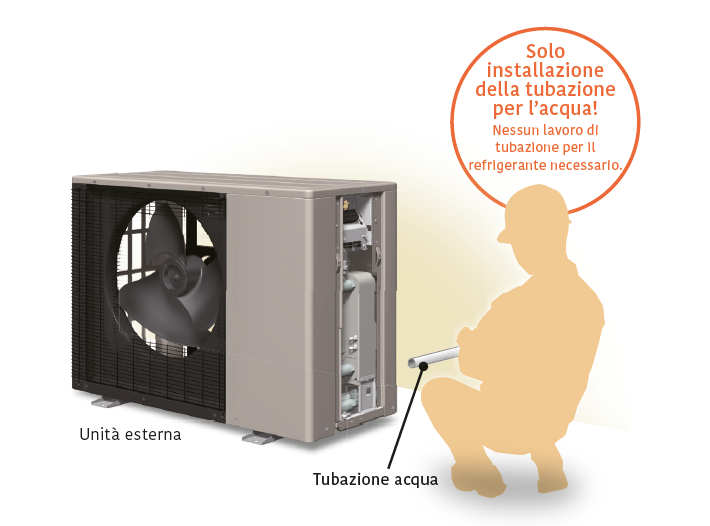 L’unità monoblocco con minori lavori di tubazione e installazione semplificata. Offre una vasta gamma di soluzioni per soddisfare le esigenze dell’ambiente di utilizzo.