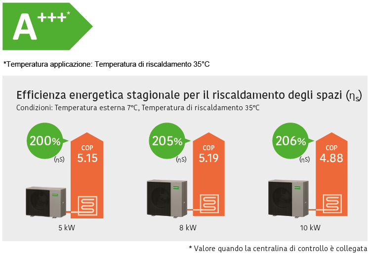 Lo scambiatore di calore a piastre, con elevate prestazioni di scambio termico, migliora l’efficienza energetica del prodotto, garantendo un’alta performance. Tutte le classi hanno ottenuto la migliore valutazione di efficienza energetica, A+++.