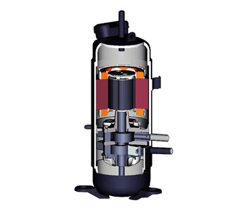 Compressore rotativo Twin CC di grande potenza, con prestazioni elevate e bassa rumorosità.