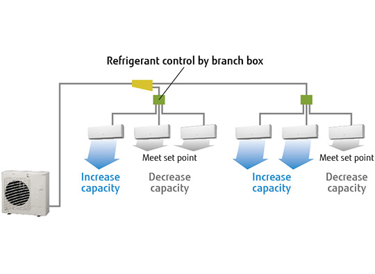 Il nuovo sistema di controllo del refrigerante ottimizzato consente di rinfrescare più velocemente tutte le stanze di un edificio per ottenere la temperatura desiderata.