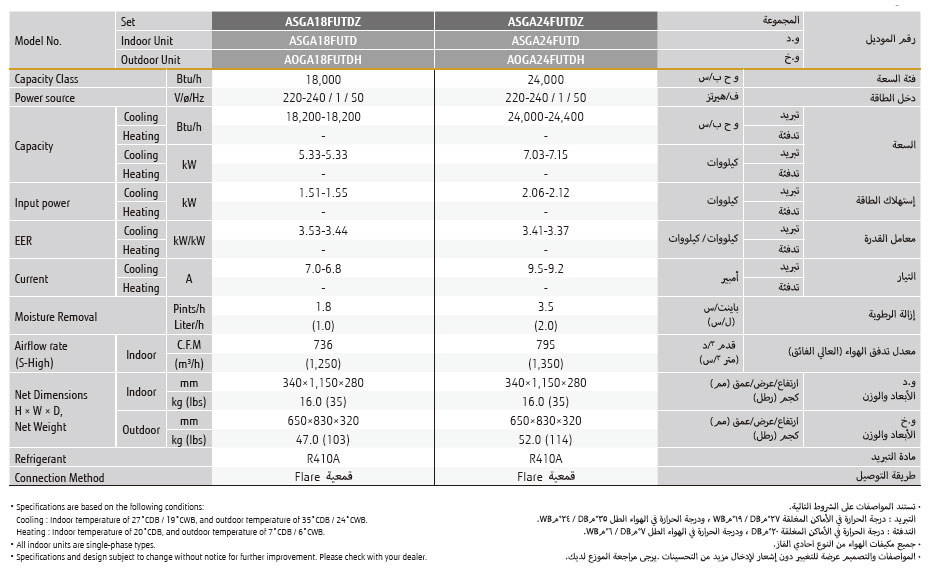 ASGA18FUTB / ASGA24FUTB / ASGA18FUTD / ASGA24FUTD / ASGA30FETA / ASGA36FETA