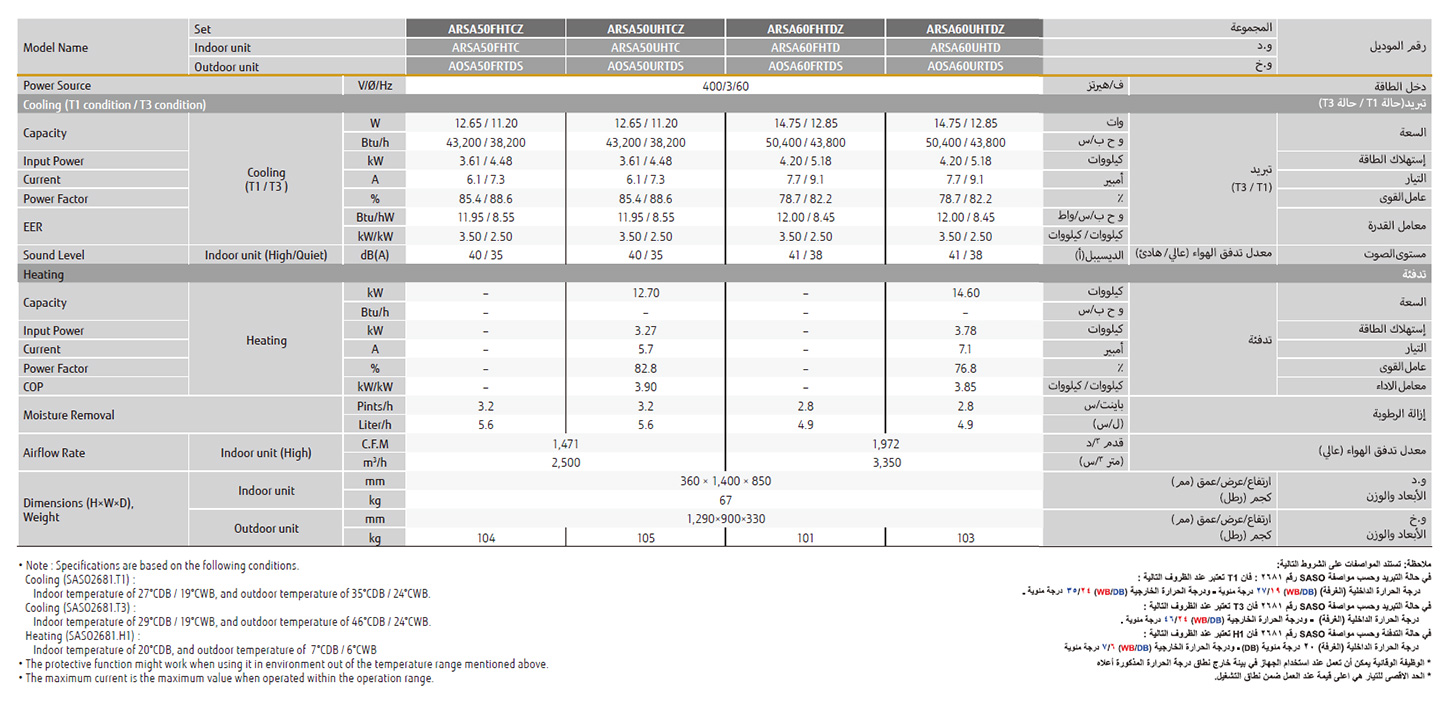 Energy efficiency is improved drastically by new airflow design and R410A refrigerant.