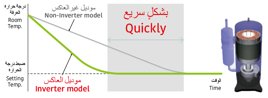 Inverter models cool faster than non-inverter models.
