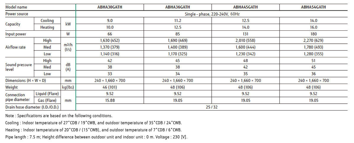 Installation which fixes the indoor unit to the wall by the use of wall brackets (Locally purchased). This type of installation can be used when the ceiling space is insufficient.